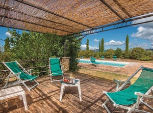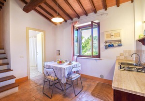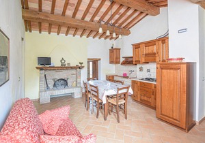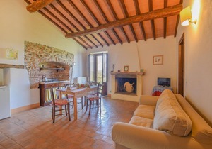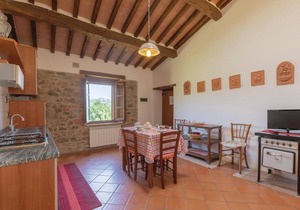 Characteristic 17th century stone house divided into 6 apartments (including IUP579 and IUP581) and dépendance (IUP772), about 80 m away. The houses are located on a 150 ha estate on a hill (480 m.a.s.l.) and is surrounded by meadows and woods. Beautiful view of the valley and the forest. In the surrounding meadow with olive grove is the swimming pool, gazebo and brick barbecue for communal use. Sale of organic olive oil DOP. Access via 1 km of gravel road. Baby cribs available on request. Distances: San Vito in Monte (restaurant) 1.5 km, San Venanzo (stores of all kinds) 12 km, Todi and Perugia 36 km, Orvieto 38 km, Assisi 45 km. Included in the price: Internet connection in the common room. IUP579: the bathroom is windowless.