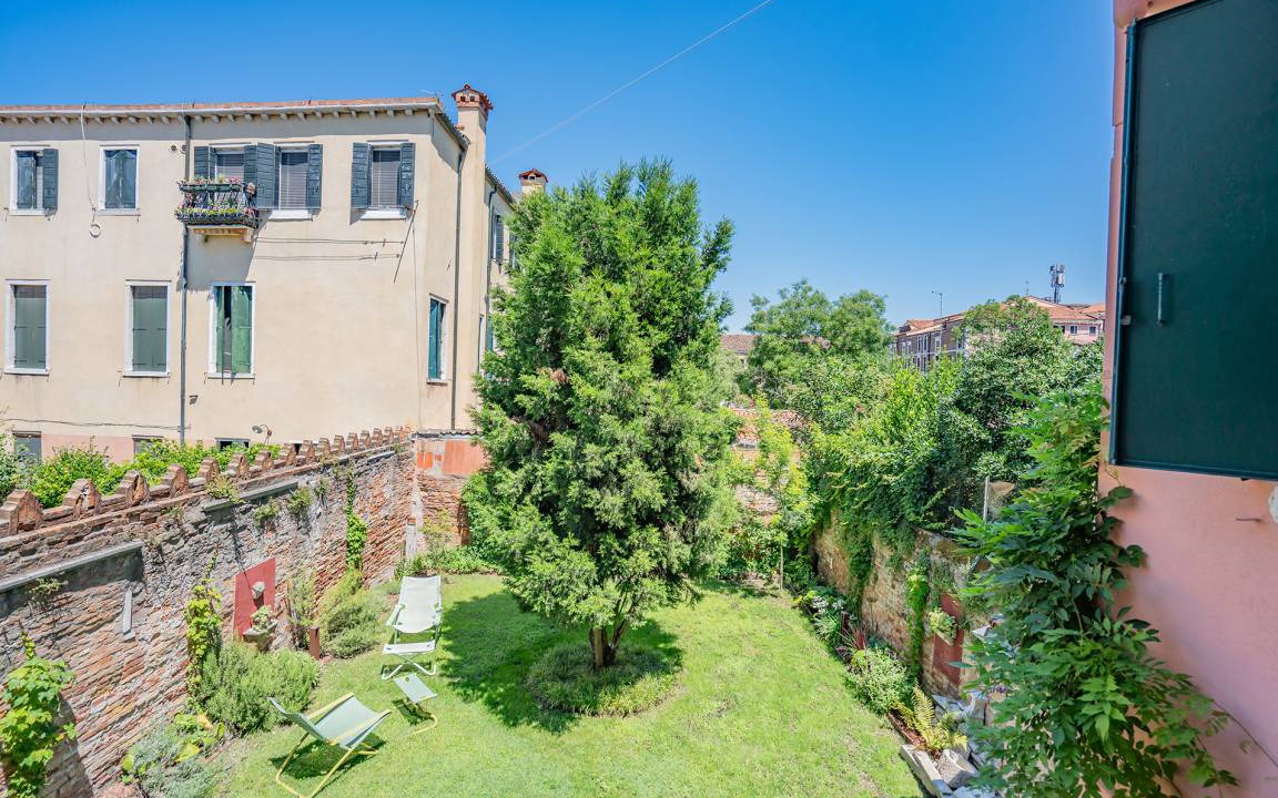 Its sublime shared secret walled garden**... a furnished grassy haven of relaxation, well-being and wonderfulness where flowers and climbing foliage gently sway in the lagoon-tinged breezes, a pair of stone putti bid you leave the world beyond behind, and a solitary tree takes centre stage amidst the birdsong and tranquility, while you take your cappuccino (or macchiatone!) in the crisp morning air or relax at dusk beneath the evening sky!