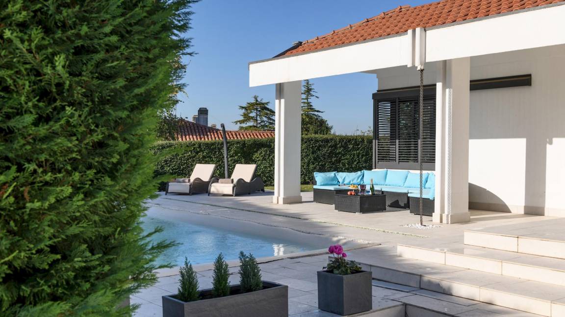 Located in Cerasolo, in the municipality of Coriano, Villa Vae Victis stands in the elegant panorama of the Riviera Romagnola and represents an exclusive refuge for those who wish to explore the beauty of the coast while staying in an environment of relaxation and well-being. Rimini, famous for its charming historic centre and 15 km of beaches, is just a short distance away, offering a variety of unforgettable experiences. This elegant property sits discreetly in a quiet residential area, offering guests a sophisticated style and a refined environment, ideal for immersing themselves in moments of complete relaxation and well-being. One of its most distinguishing features is the internal wellness area, equipped with a tempting whirlpool tub with waterfall and a luxurious sauna, offering guests a relaxing and rejuvenating experience. Among the advantages of Villa Vae Victis is undoubtedly its strategic position which allows guests to quickly reach renowned places of interest. In addition to Rimini, with its historical heritage and enchanting beaches that invite long walks and moments of leisure, within easy reach is the Republic of San Marino, with its medieval towers and timeless charm. Furthermore, the proximity to the famous MotoGP circuit of Misano Adriatico makes this residence an ideal choice for racing and motorcycle enthusiasts