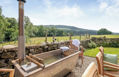 Shower Room: Cubicle Shower, Heated Towel Rail, Toilet. Oil central heating, electricity, bed linen, towels, Wi-Fi and fuel for wood burner included. Travel cot and highchair. Welcome pack. External games room with pool table, table tennis and dart board. Front garden with garden furniture and barbecue. Wood-fired hot tub for 2 (private). Bike store. Private parking for 4 cars. No smoking.. Tucked away in the heart of the North York Moors National Park, this stunning stone built holiday home, which is part of the Hawnby Estate, offers the perfect luxury countryside escape for families and groups of friends. Set amidst rolling hills and tranquil woodlands, the property combines traditional charm with modern comforts to create a truly special place to stay.