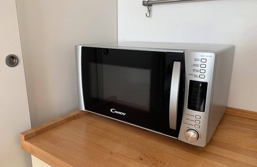 You will find both a microwave and an electric oven, a very large XXL shower, ironing board, crib and high chair on request, and a reading chair.