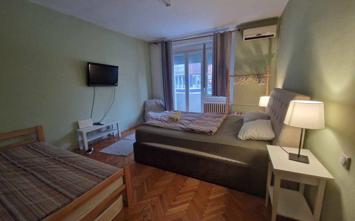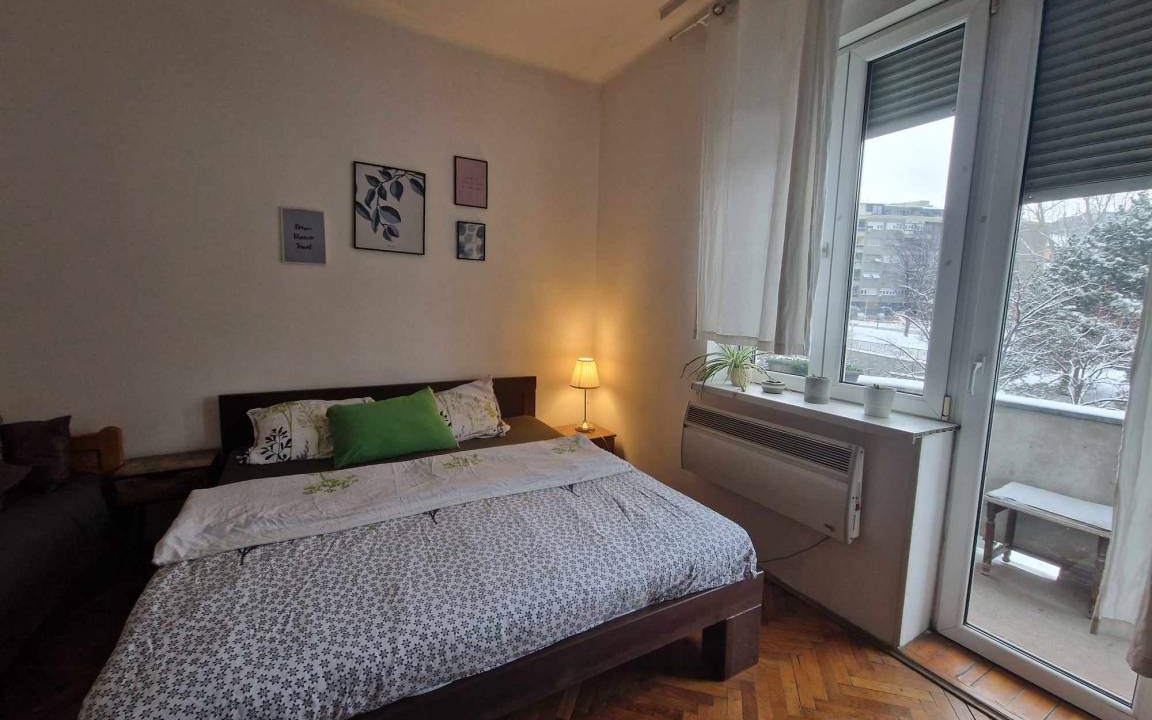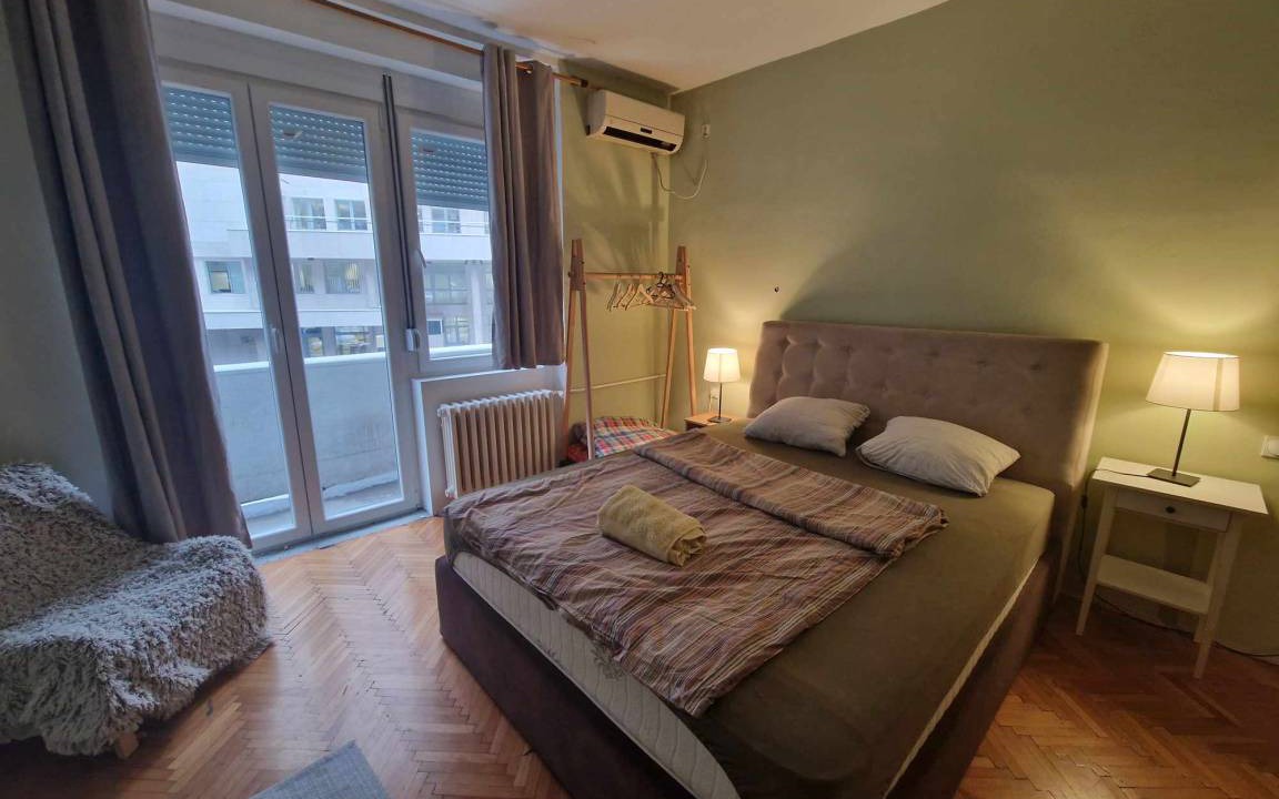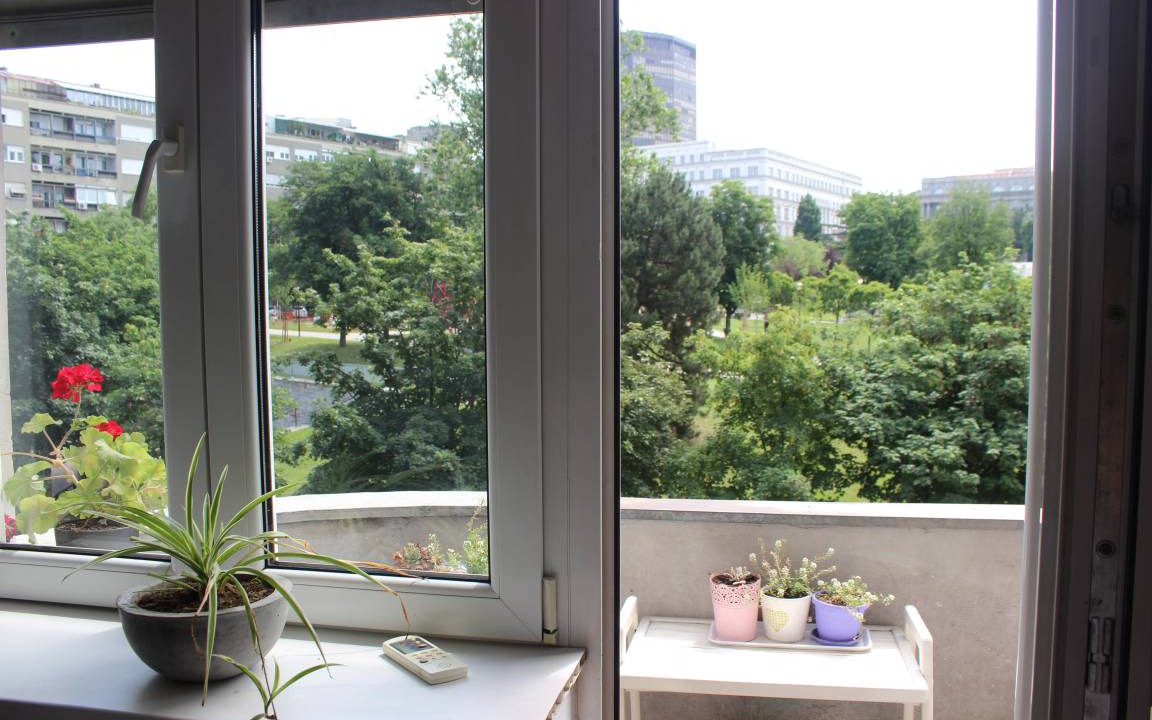 Large spacious private room for 1 - 3 people with a King size bed & private balcony right in the heart of Belgrade with a spacious open floor living room and kitchen with the room overlooking a serene park and some of Belgrade's most historic buildings wedged in a peaceful area around the corner from the main bus, and main tram line in the city center with just either a 5-minute walk to the main pedestrian street or the promenade on the Sava river.