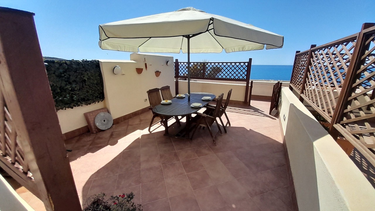 • A terrace with outdoor shower and sea view, table and chairs and sun loungers for outdoor use.