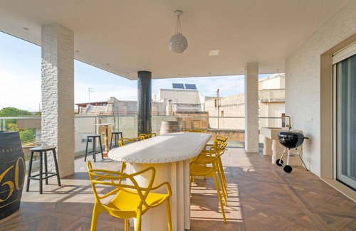 This modern and spacious penthouse apartment with whirlpool welcomes you in the heart of Grottaglie.