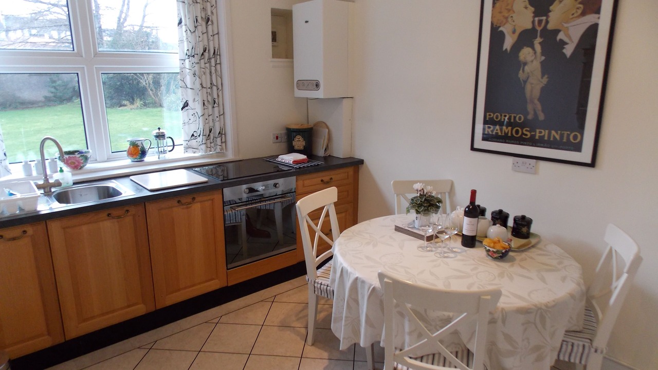 The new kitchen has an induction hob and fan assisted oven, dishwasher, microwave, washing machine, fridge and freezer. Very well stocked with new crockery, cutlery, pans, cook's knives and utensils for four people.