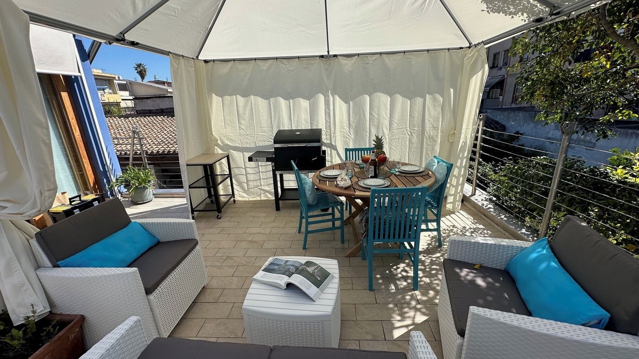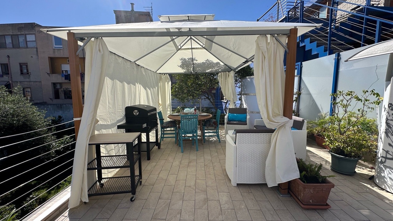 House with terrace and equipped gazebo 10' drive to 'POETTO' beach is located in Province of Cagliari. House with terrace and equipped gazebo 10' drive to 'POETTO' beach provides accommodation, featuring Air Conditioner, Parking, Ocean View, among other amenities. This Apartment features Air Conditioner, Parking, Ocean View, to make your stay a comfortable one.