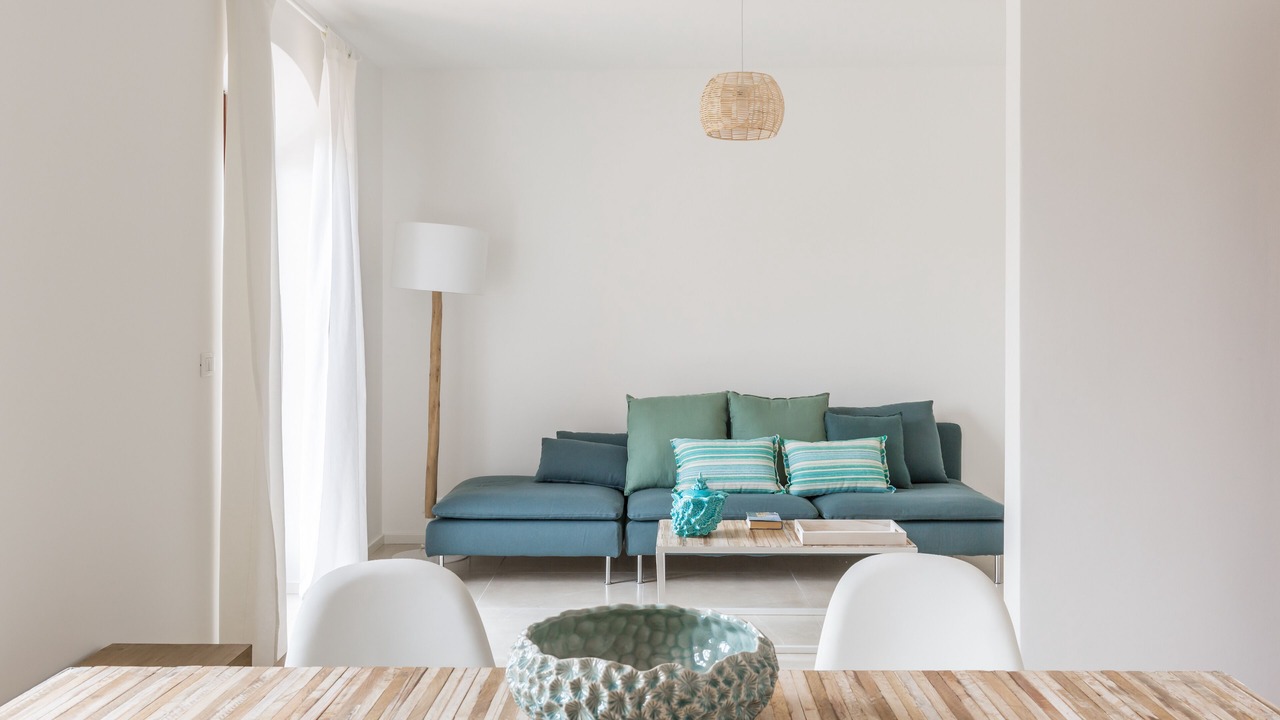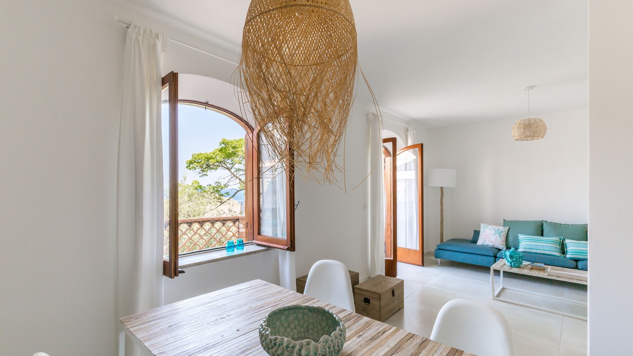 The finely furnished 100 sqm apartment has a private and independent entrance and is spread over two large levels distinguished by the living area and the sleeping area.