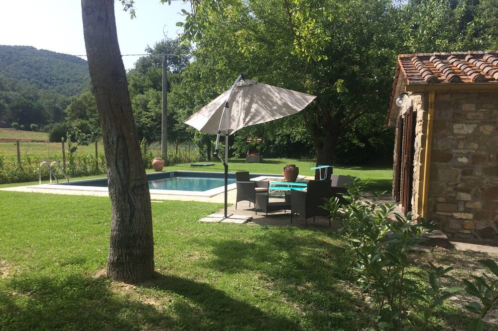 A lovely cottage, literally on Umbria/Tuscany border, with private fenced garden and pool. Very easy access, at just 10 minute drive from town. Surrounded by green hills, you will enjoy the 2.000 sq metres garden with 10x5 pool built in 2016, under the shade of our trees.