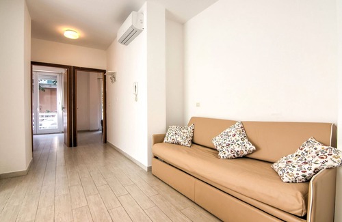 This stylish apartment in Rimini with 2 bedrooms can accommodate 6 people. Ideal for a large family looking for a beachside vacation close to sea, it features a shared swimming pool to enjoy a few laps when at home. The town centre with supermarkets and bars is within 200 m, where you can shop or have fun. The sea is at a distance of 100 m, perfect for beach vacationers. You can enjoy local cuisines at restaurants, 100 m away. The apartment features a kitchenette apart from washing machine (shared) for guests convenience. The living cum bedroom has a TV and double sofa bed. There is a balcony to enjoy morning views. Heating and air conditioning ensures that you stay comfortable in all seasons. Parking is also available. Play equipment ensures the kids have a fun time while staying here. Lift is another amenity here for your convenience. Public transport is available 100 m away for easy connectivity.