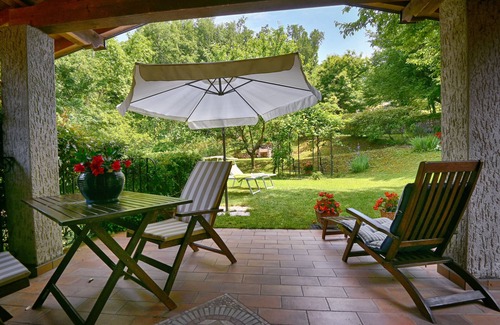 (Text automatically translated) Beautiful apartment just a few kilometers from Lake Garda (5 km from Salò) located in a single detached house. You will be immersed in the Natural Park of the High Garda. You will have the chance to enjoy the beaches of the lake just a few minutes of machines or the ability to retreat to the quiet of the hill, away from the traffic of Lake Garda. The house consists of a living room with kitchenette, a double bedroom and a bathroom. Attention to detail distinguishes the apartment with wooden roof beams, the Verona marble and hand-crafted furniture. We care for your health, so all the furniture and the paints used are organic! The garden with gazebo and terrace offer moments of relaxation in corner taken care of. Around you the park offers beautiful walks among the olive trees or forests of chestnut trees.