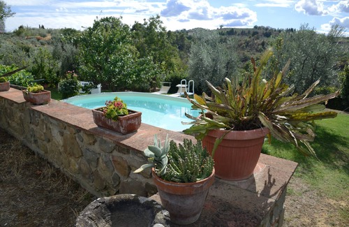 The stone cottage is located in the middle of the Chianti hills between olive trees and woods. Unique rental property. altitude about 600 meters. 800 meters from the medieval village of Montegonzi. Unique rental property. The house and entrance are independent from the large adjoining farmhouse (inhabited by my mother, father and me). Gardens, terrace, changing barbecue, patio for exclusive use. Non-infinity pool 8.5 x 6.5. Height 150 cm. Free covered parking 7 meters from the country house. Distance from Gaiole in Chianti 15 km. Distance from Radda in Chianti 25 km. The country house is located in an excellent position to visit Chianti, Val d'Orcia, Siena, Florence, Arezzo, Cortona, Perugia. SWIMMING POOL OPEN FROM 01/05/2022 TO 15/10/2022 (weather permitting).