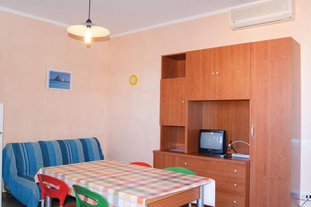 This apartment is located in a residential complex in front of the tourist port of Castelsardo, in Sardinia. It is simply but practically furnished and only 500 m from the nearest sandy beach. Ideal for a vacation with sun, beach and sea. Another beach with pebbles is also only 500 m away. On hot summer days the air conditioning in the apartment offers cooling. Outside you have at your disposal a 1500 m² green plot, shared with the other apartments.