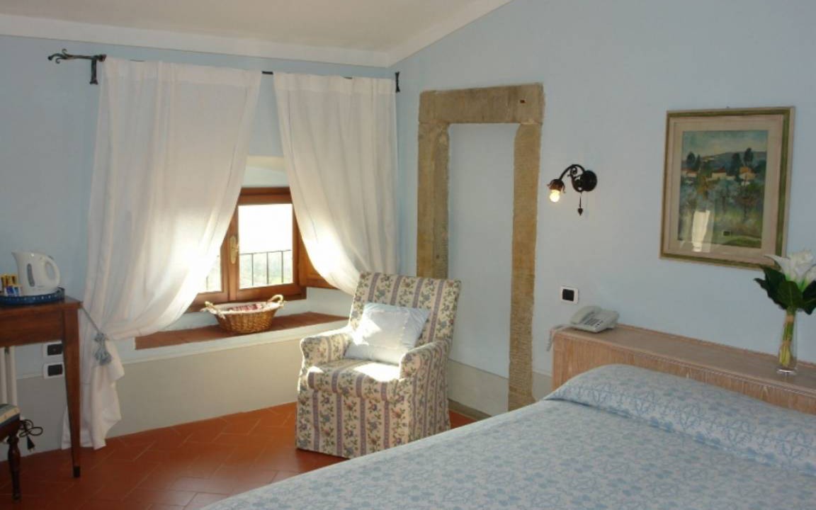 Executive rooms (30 square meters): Alcova room (2 beds) and Rondini (2 beds) are located on the second floor and are next to each other overlooking the garden and pool, both with double bed or twin and bathroom with shower.