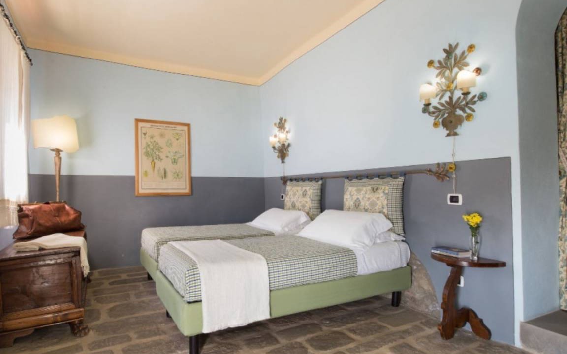 Superior Rooms (about 32 sqm): Arco room (2 beds) and Fonticina room (2 beds) are located on the ground floor facing the garden and are connected by an internal door, both with double or twin beds and a bathroom with shower .
