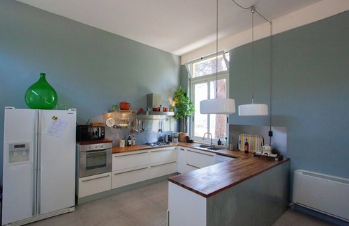 On the ground floor is the comfortable spacious living room with large open kitchen. The loft-like room has a high ceiling and is decorated in a modern style. In addition to a stylish fireplace * there is also WIFI on request.
