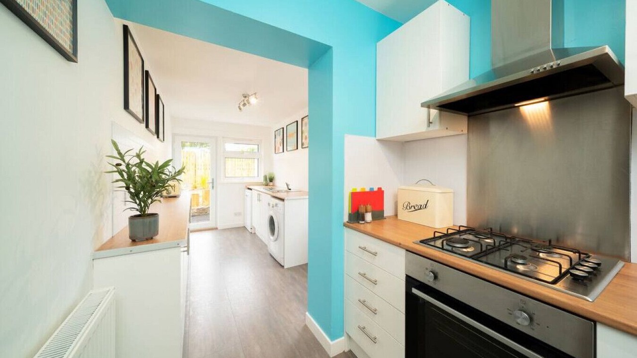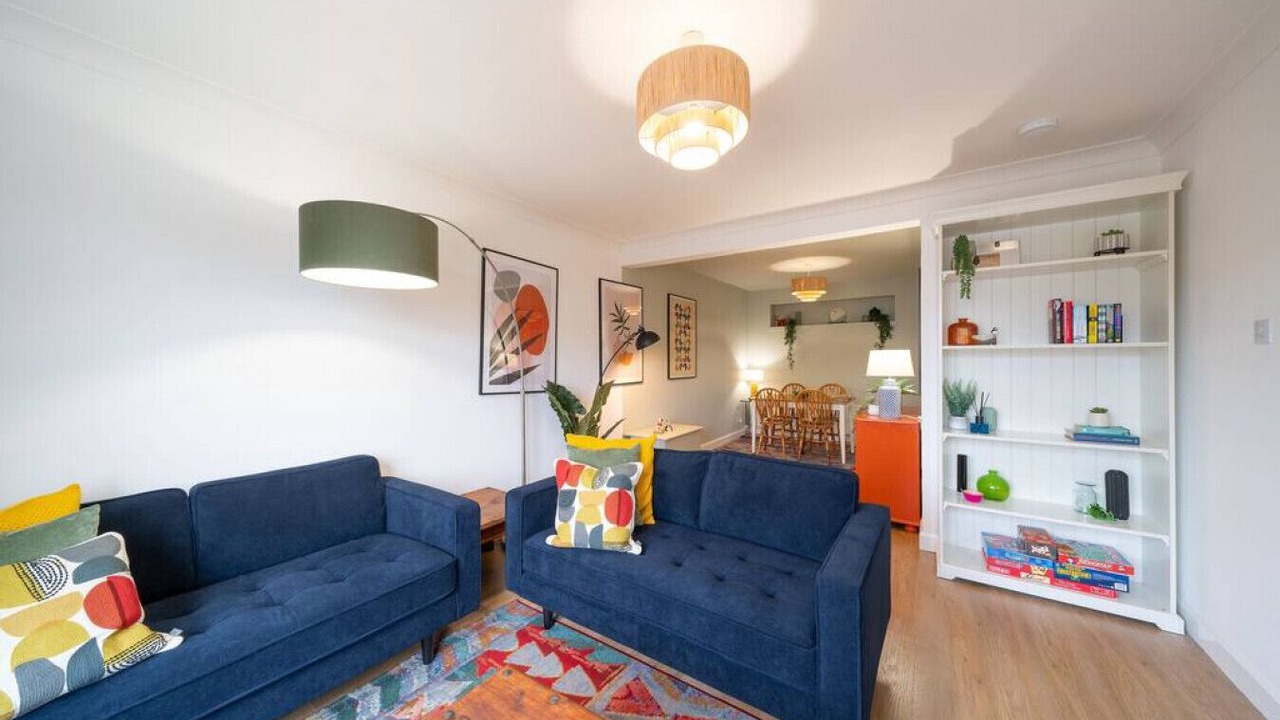 GeneralElectric kettle, Number of bedrooms - 2, Dishwasher, Spices, Designer toiletries, Stovetop, Ceiling fan, Kitchen, No rollaway/extra beds, Iron/ironing board, Television, Bed count minimum 3, Toaster, Bed sheets provided, Hair dryer, Free WiFi, Digital TV service, Microwave, Highchair, Laptop-friendly workspace, Towels provided, Number of bathrooms - 2, Cookware, dishware, and utensils, Washing machine, Private bathroom, Heating, No cribs (infant beds), Freezer, Oven, Refrigerator, Bed count maximum 3 |